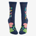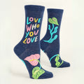 Spread love and positivity with our Love Who You Love Women's Socks! These beautiful dark blue socks feature the empowering message "LOVE WHO YOU LOVE" in vibrant lettering, accompanied by artistic botanical illustrations. It's a reminder that love is all you need, it's all around, and it's available to every-freaking-one of ya!